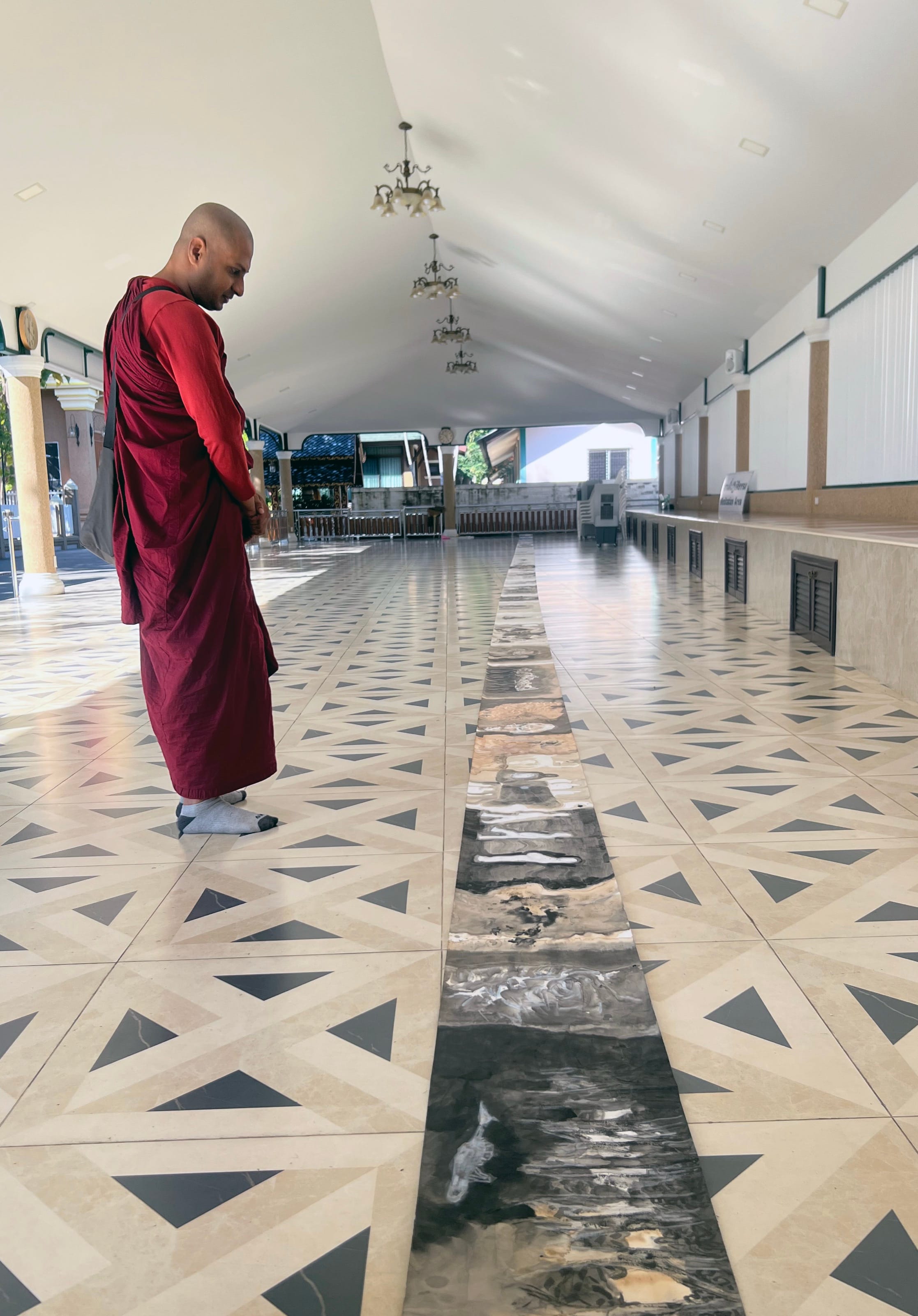 From 4 December 2025 to 10 January 2026, the artist Lao Mu undertook a forty-one-day intensive Vipassanā retreat at Wat Jong Thong (宗通寺) in Chiang Mai, Thailand. Throughout the retreat, painting served as an action-record, leaving traces of movement on a 35 cm × 50 m raw xuan paper scroll.