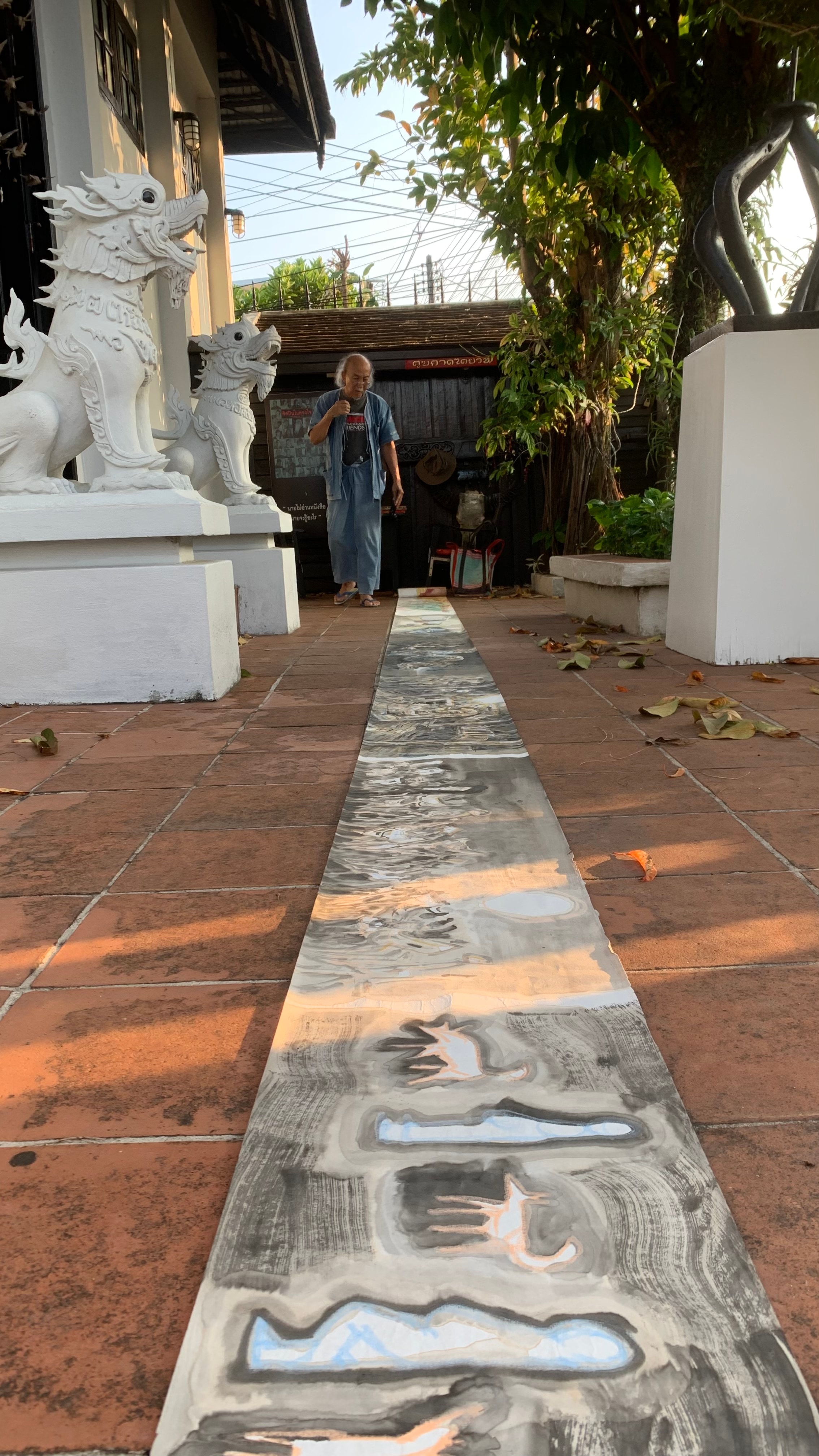 拜访清莱本地的资深艺术家。长卷铺展于狮像护卫的庭院——旅途的长度、气候、节律,一次呈现。